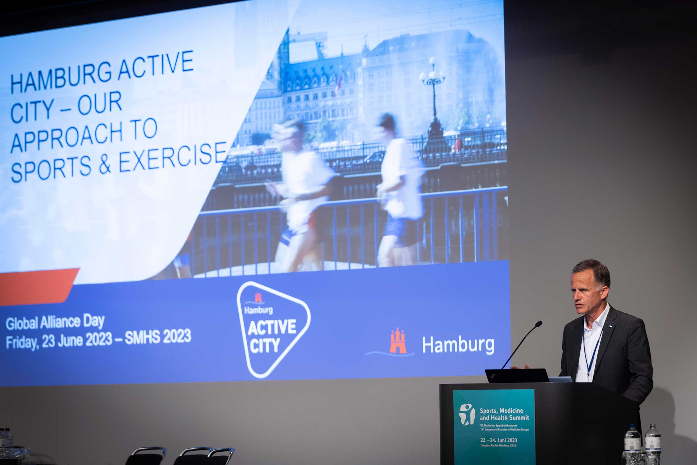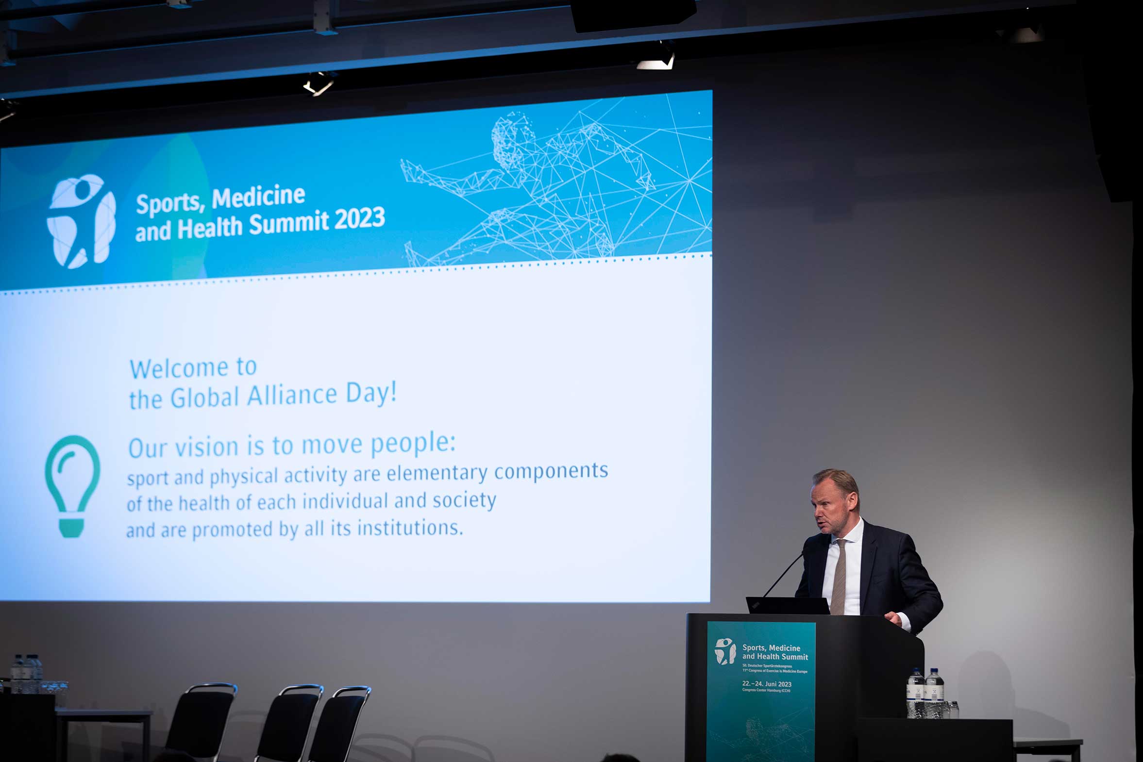 Vom 22. bis 24. Juni 2023 fand der zweite Sports, Medicine and Health Summit in Hamburg statt. 1.650 nationale und internationale MedizinerInnen, WissenschaftlerInnen, TherapeutInnen, TrainerInnen und viele weitere Interessierte aus den Bereichen Sport, Medizin und Gesundheit kamen zusammen, um die Vision des Summits, Menschen zu bewegen und Sport und Bewegung als elementaren Bestandteil der Gesundheit jedes Einzelnen und der Gesellschaft zu verankern, voranzutreiben.
